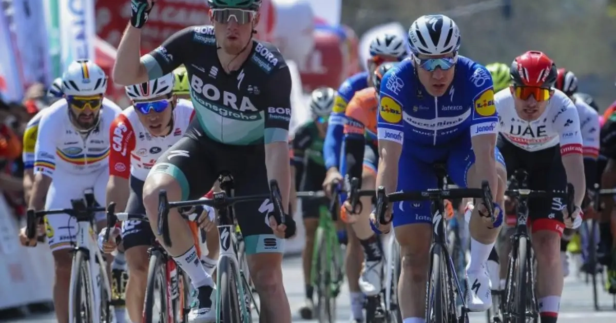 Deceuninck - Quick-Step avait préparé un train pour Hodeg, mais c'est Sam Bennett (Bora-Hansgrohe), d'abord présent dans la roue du jeune colombien, qui est parti décrocher une victoire sans jamais être inquiété. Derrière lui, c'est Wout Van Aert qui a eu les jambes pour décrocher la seconde place. Le maillot blanc a réalisé un joli sprint.